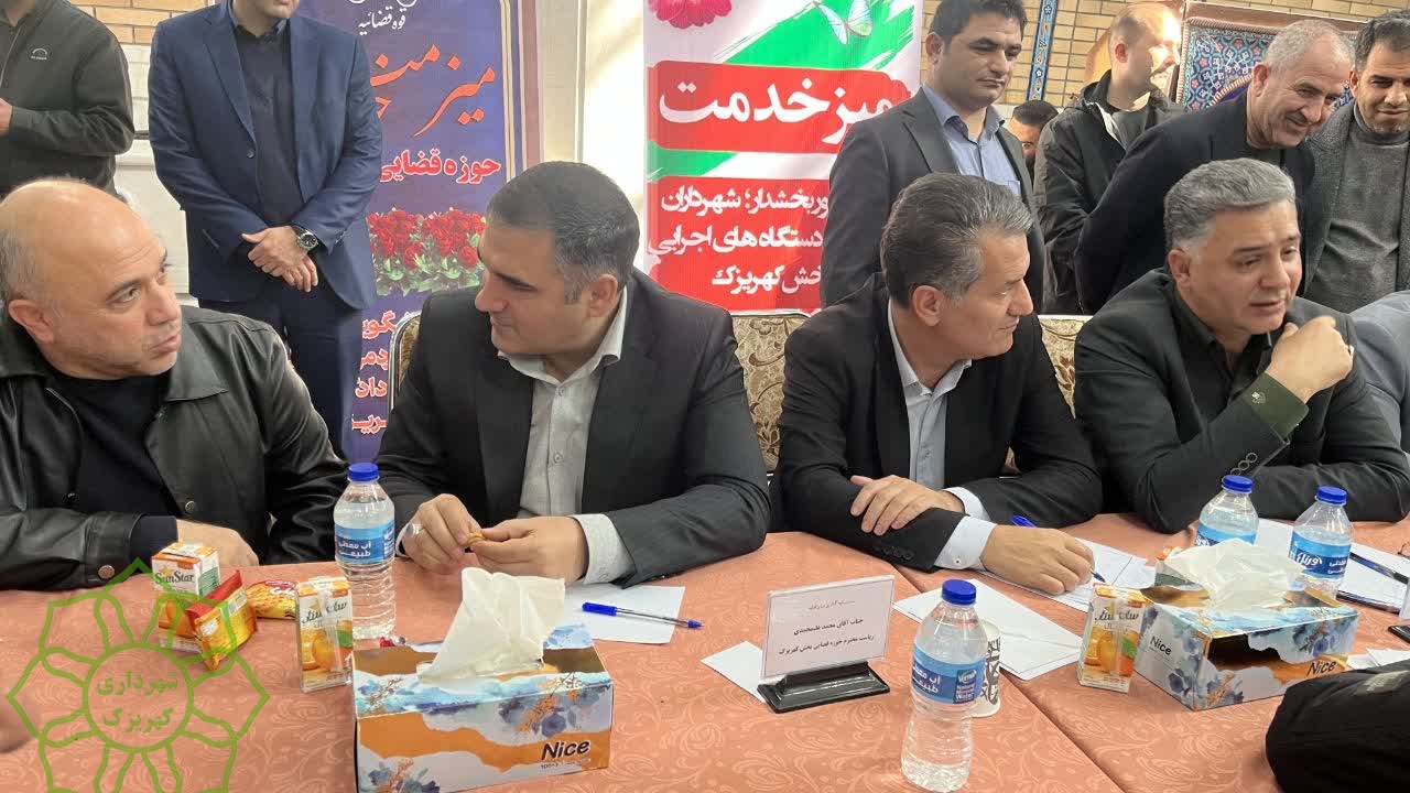 پس از اقامه نماز جمعه، میز خدمت مسئولان با هدف پاسخگویی بیواسطه به مطالبات و مسائل شهروندان در محل مصلی بخش کهریزک برپا شد. در این برنامه، محمدعلی محمدی رئیس دادگستری بخش کهریزک، کریم گنجی بخشدار کهریزک، علی کلهر شهردار کهریزک، مرتضی همتی شهردار باقرشهر، فرماندهان انتظامی و رؤسای ادارات خدماترسان حضور یافته و به بررسی درخواستها و مشکلات مردمی پرداختند.