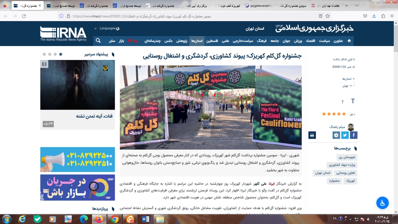 *بازتاب خبری سومین جشنواره گل کلم کهریزک